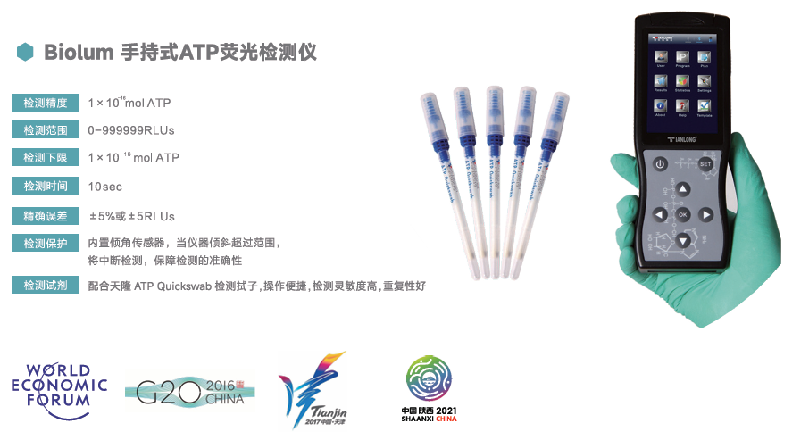 本次合作的核心產(chǎn)品Biolum手持式ATP熒光檢測儀,是天隆科技在食品安全和衛(wèi)生監(jiān)控領(lǐng)域的明星產(chǎn)品。它檢測速度快,10秒即可完成潔凈度檢測,具備靈敏度高、操作簡便、機身小巧便捷等突出特點,適用于包括食藥監(jiān)抽檢、食品加工企業(yè)自檢、醫(yī)療機構(gòu)、商超現(xiàn)場抽檢、校園食堂巡檢、大型活動用餐安全保障等的多場景檢測。該產(chǎn)品在國內(nèi)衛(wèi)生監(jiān)督系統(tǒng)及食品企業(yè)得到廣泛應(yīng)用,也曾多次為G20峰會、達(dá)沃斯論壇、全運會等重大國際活動提供食品安全保障。